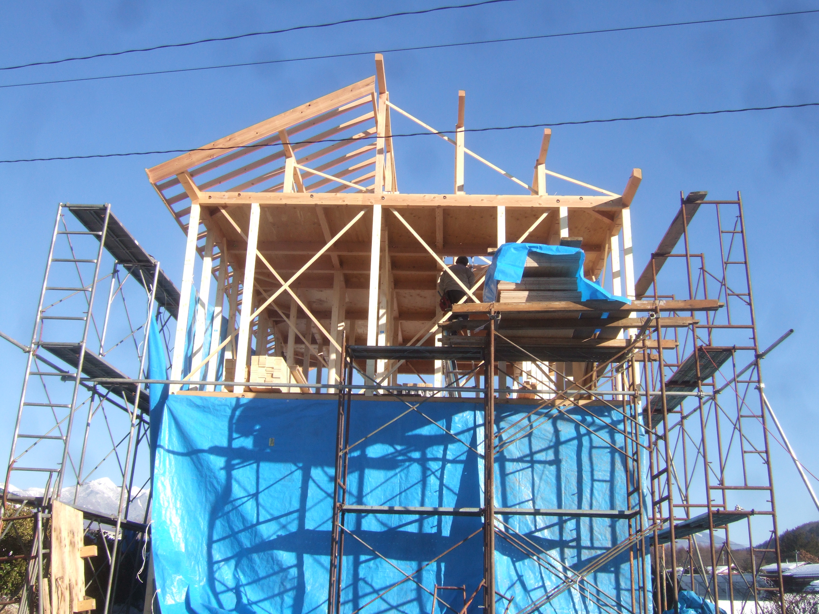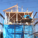 垂木を打ち屋根の形になって来ました。