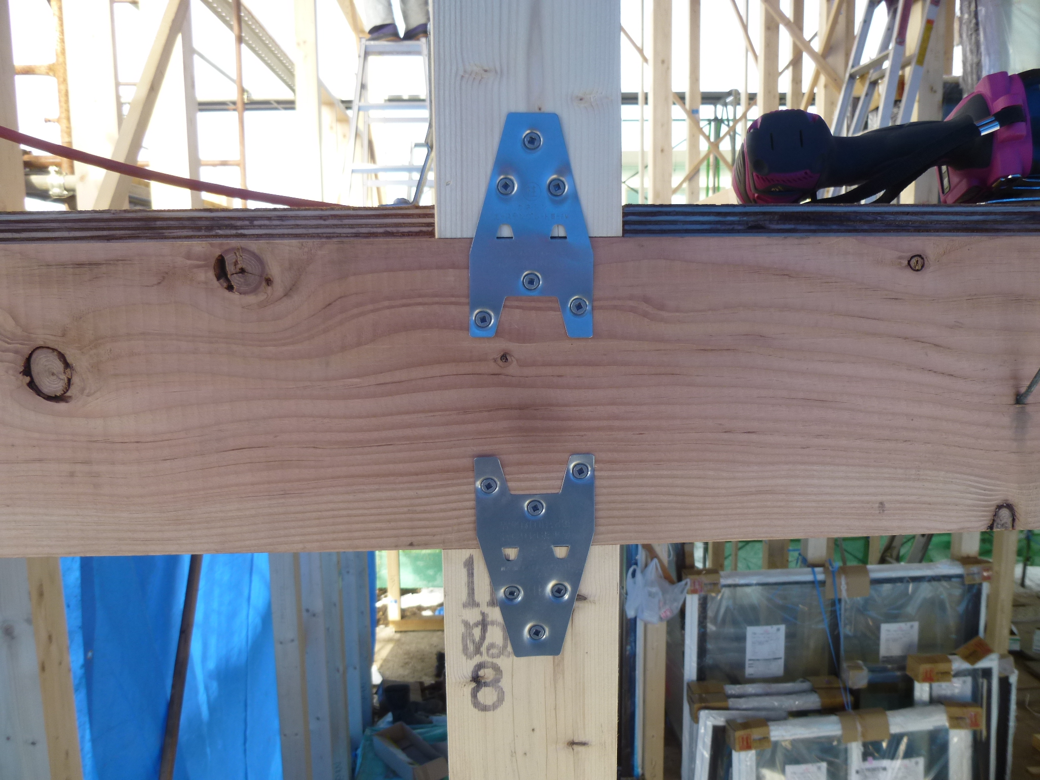継手部分が外れぬ様に金物で固定します。